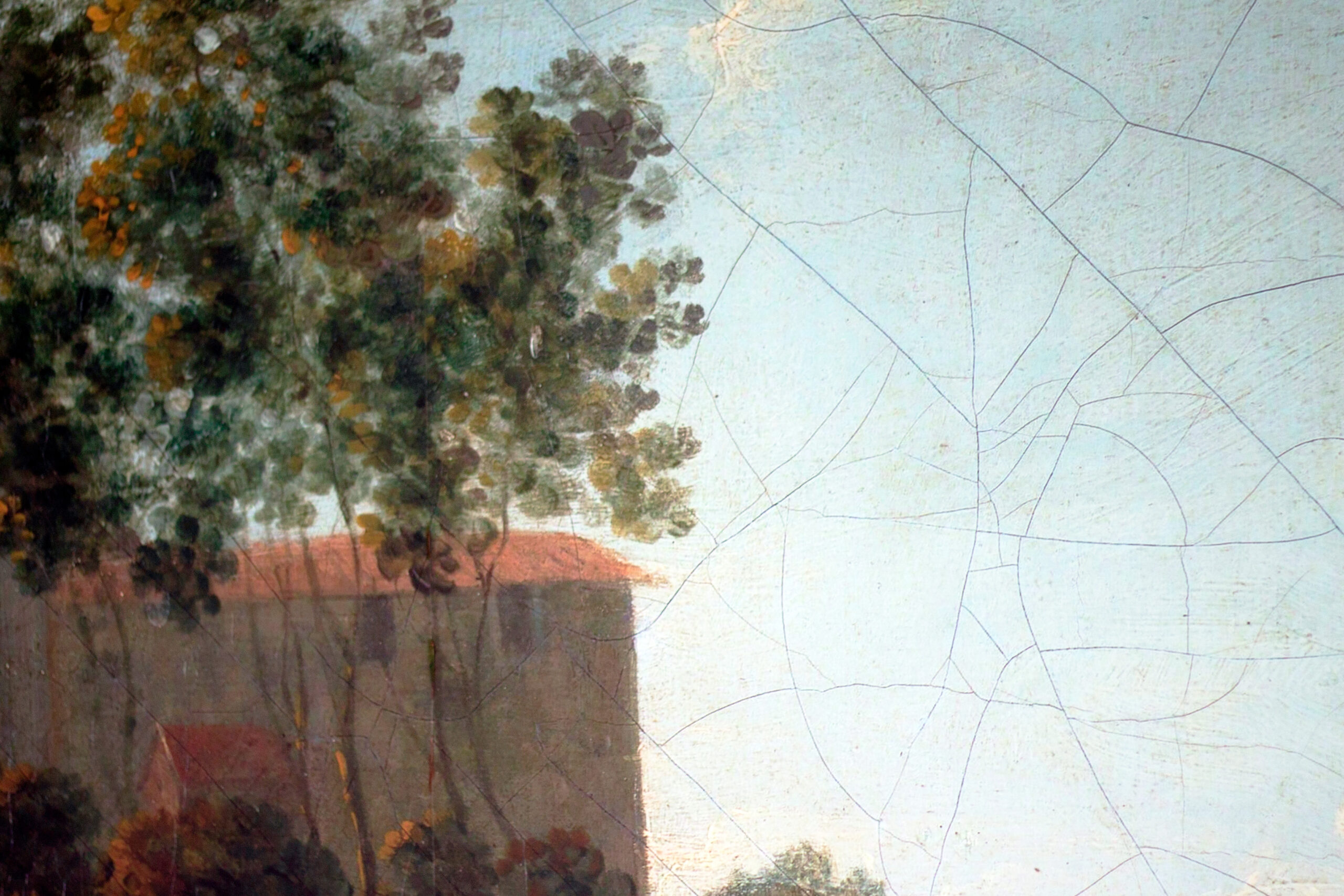 For this project, I wanted to add a mural to a wall in my son’s room that was located in an awkward unusable spot between two doors. I showed him several ideas ranging from a bright abstract I painted to several scenic public domain landscapes. I thought for sure he’d go with the abstract, but in the end, he surprised me and chose The Head of Lake Nemi by an imitator of Richard Wilson RA from the Yale Center for British Art. I downloaded the image and checked to make sure the size would work.